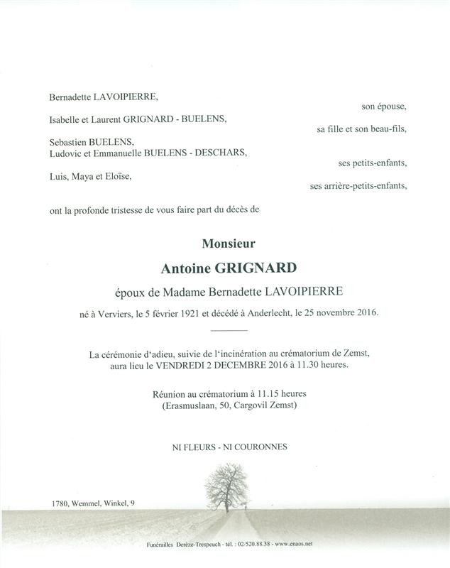 Décédé à Anderlecht (1070) le vendredi 25 novembre 2016 à l'âge de 95 ans