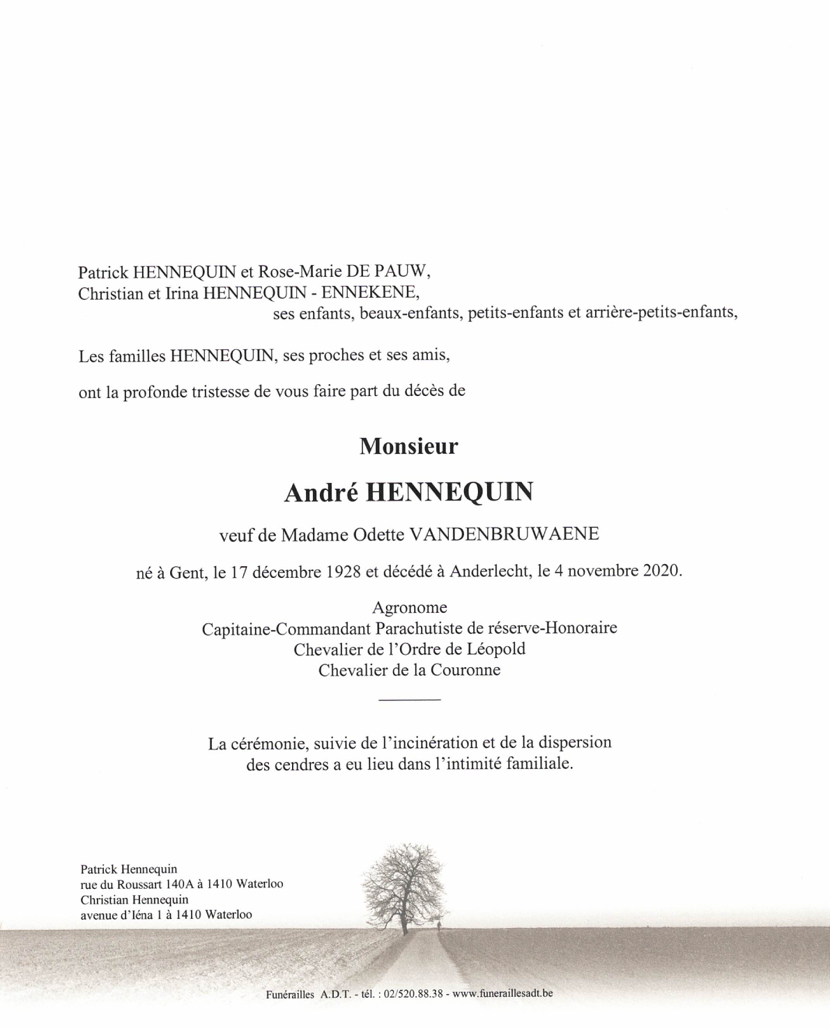 Décédé à Anderlecht (1070) le mercredi 4 novembre 2020 à l'âge de 91 ans