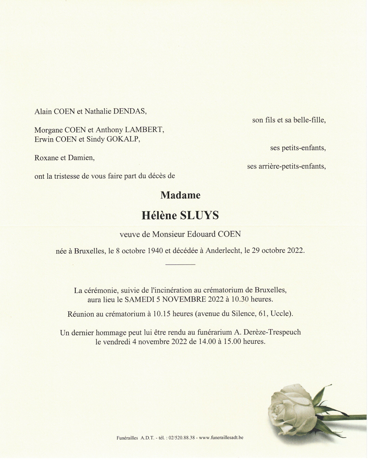 Décédée à Anderlecht (1070) le samedi 29 octobre 2022 à l'âge de 82 ans
