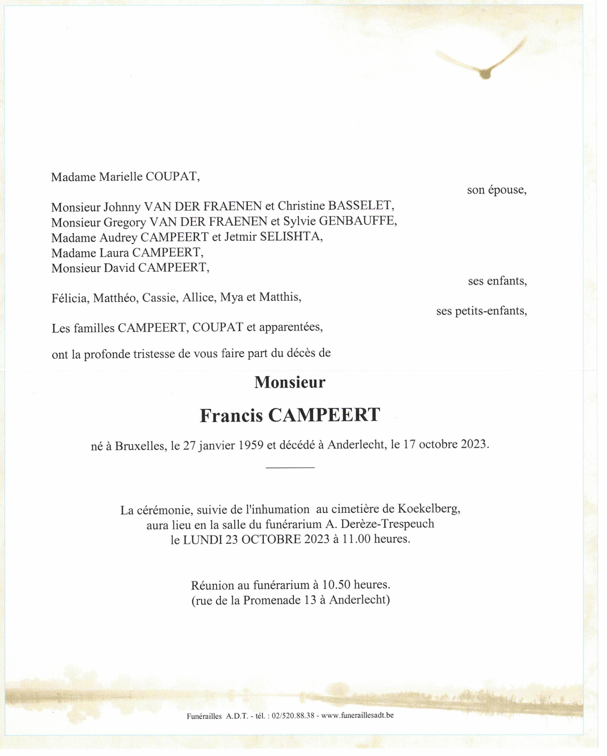 Décédé à Anderlecht (1070) le mardi 17 octobre 2023 à l'âge de 64 ans