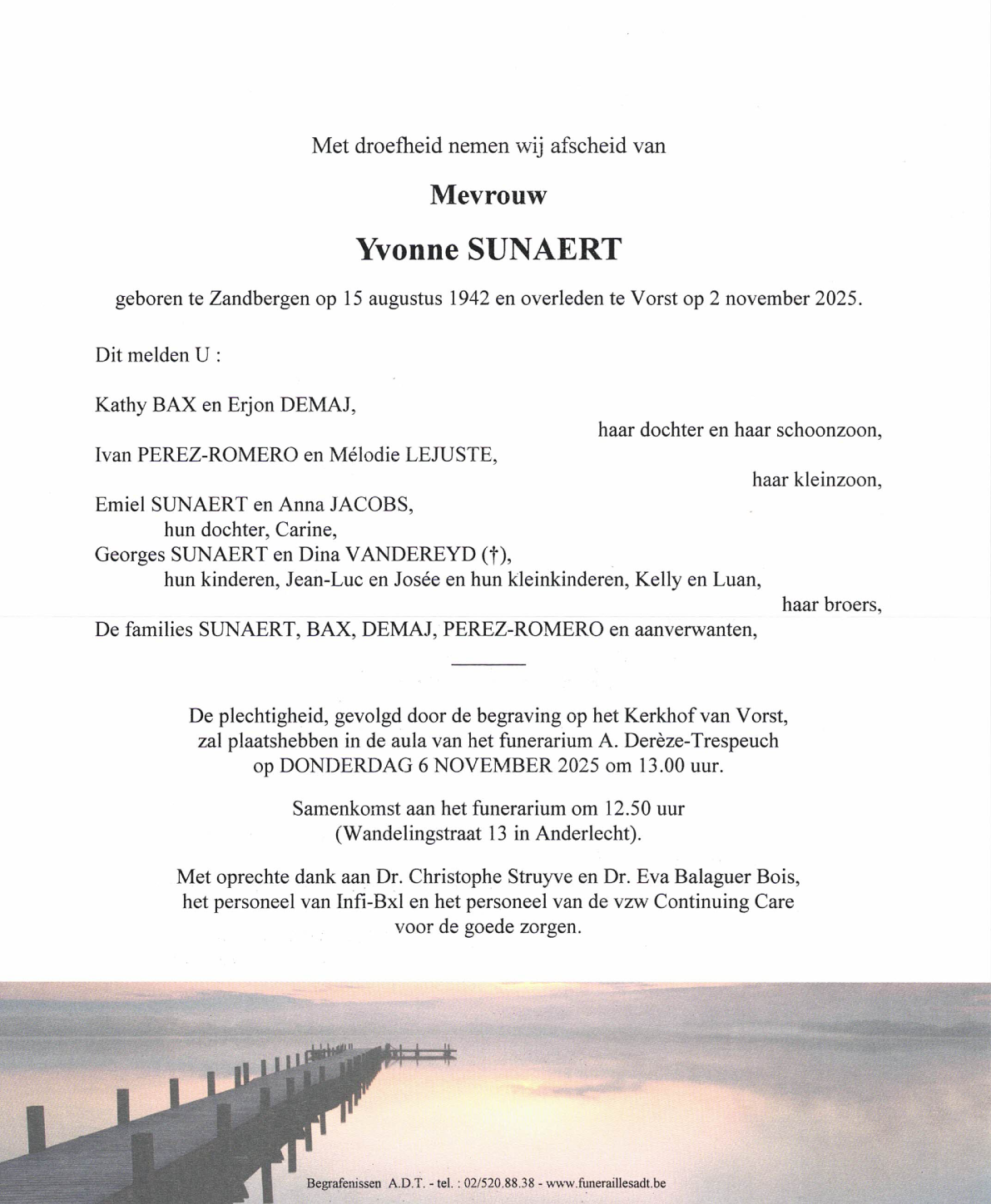Décédée à Forest (1190) le dimanche 2 novembre 2025 à l'âge de 83 ans