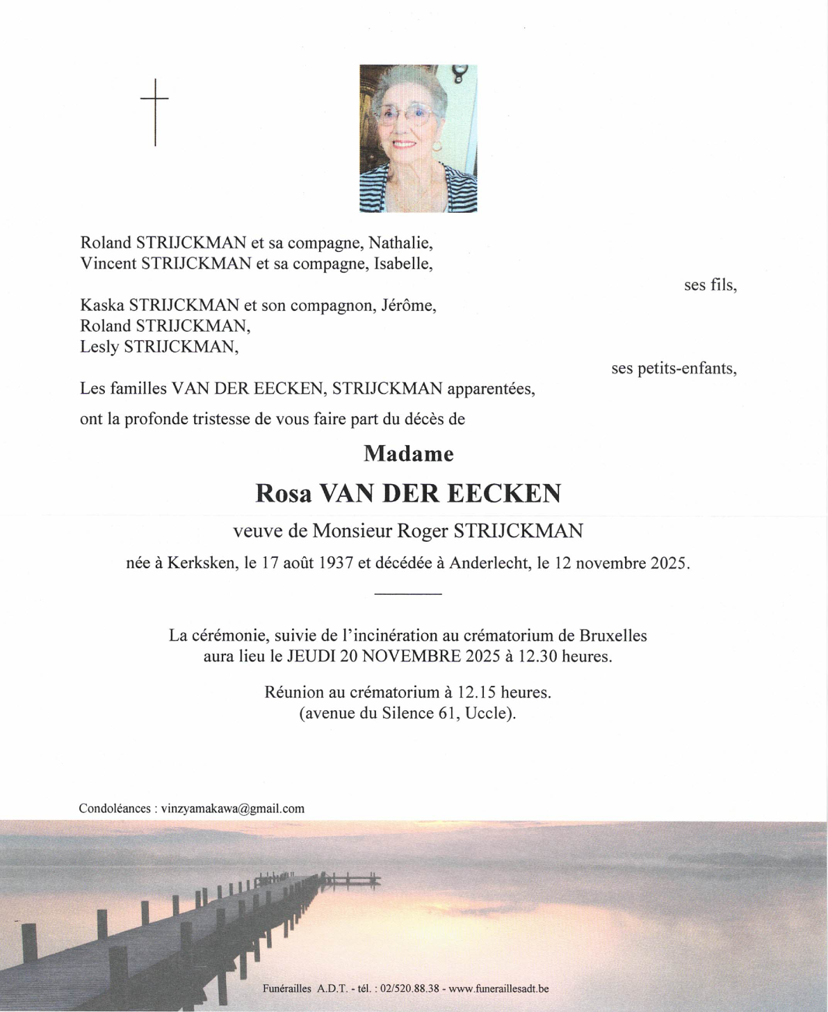 Overleden te Anderlecht (1070) op woensdag 12 november 2025 op 88-jarige leeftijd