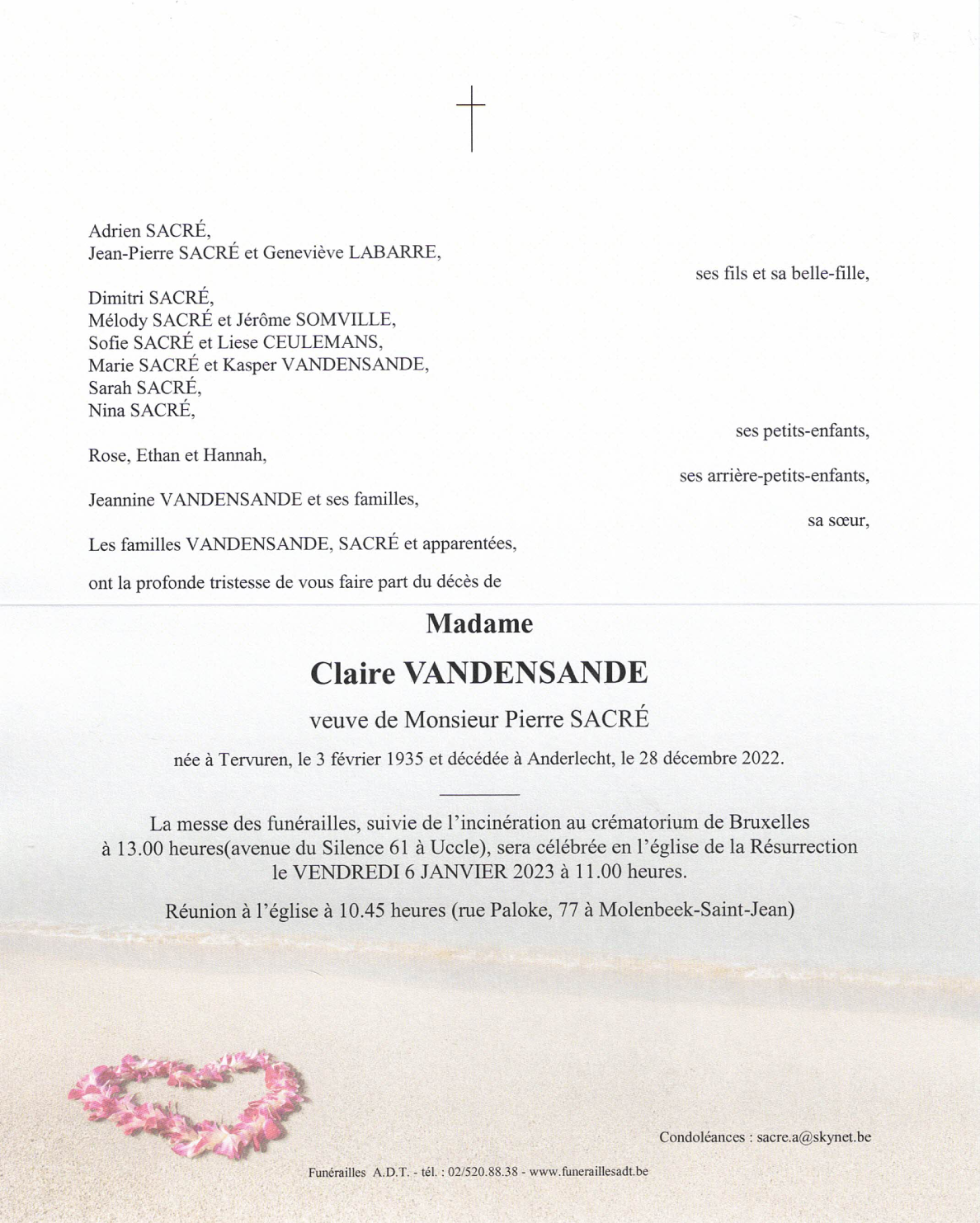 Décédée à Anderlecht (1070) le mercredi 28 décembre 2022 à l'âge de 87 ans